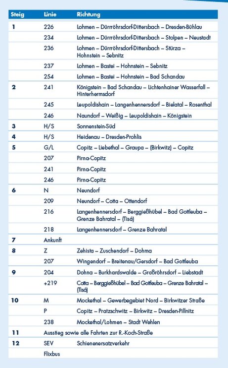 - Pirna > Fußweg mindestens 200 m mit mindestens 5 Minuten Übergang.