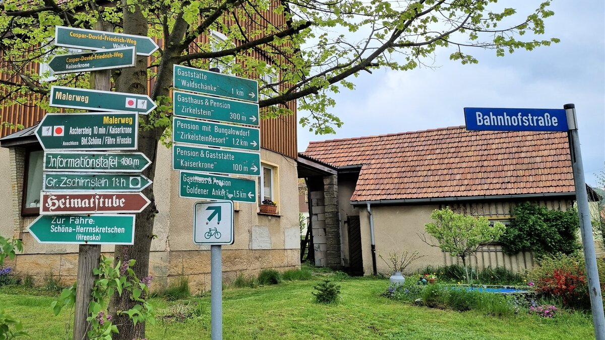 Steigen Sie am Dorfplatz in Schöna aus dem Bus und gehen zuerst über den Zirkelstein mit seinem interessanten Aufstieg über einige Leitern. Vom Zirkelstein mit seinem wunderschönen Rundblick können sie alternative Wege wieder zurück nach Schöna wählen. Dort gibt es eine gepflegte Einkehrmöglichkeit unweit vom Dorfplatz.