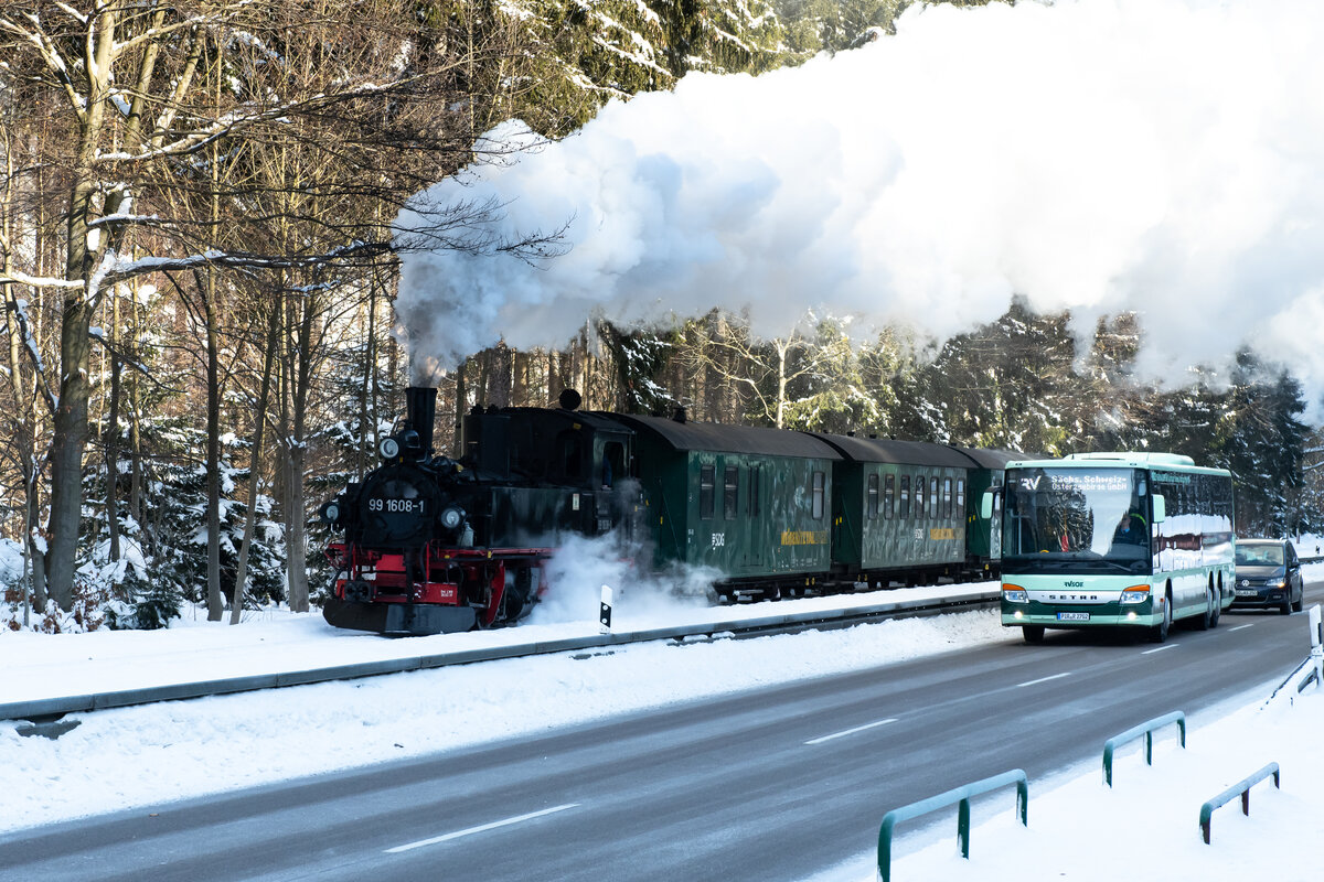 Durch die direkte Führung über die Bundesstraße ist die Reisezeit im Bus auch schneller als der Umweg mit der Bahn über das Müglitztal.