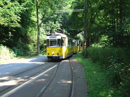 Kirnitzschtalbahn vor der Depoteinfahrt